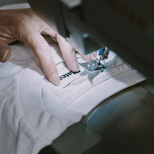 One of our most popular retail finishing options is private labeling. This process typically involves removing the original label—either tearing it off or cutting along the seam—and replacing it with your brand’s custom label. We usually screen print a new label directly onto the garment, complete with your branding, size, fabric details, and care instructions. Alternatively, we can sew on a custom label with the same information for a professional, branded look.